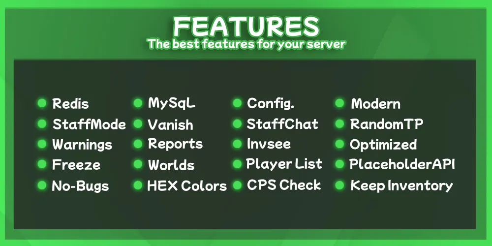 StaffModeX сохраняет и восстанавливает инвентарь ваших модераторов, продукты питания, состояние здоровья и местоположение, делая невозможным злоупотребления и отслеживая всех, как ваших игроков, так и администраторов.